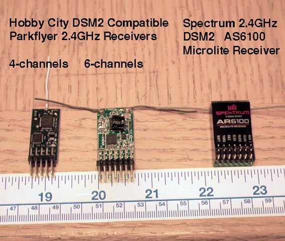 Here is on the picture showing two Spektrum DSM2 compatible receivers next to the original Spektrum AR6100.